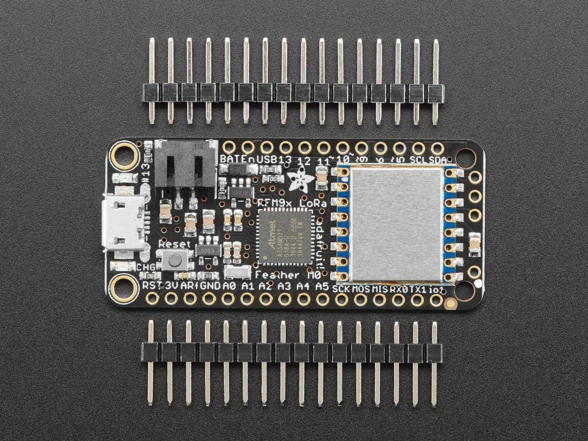 This is the Adafruit Feather M0 RFM96 LoRa Radio (433 MHz). We call these RadioFruits, our take on an microcontroller with a “Long Range (LoRa)” packet radio transceiver with built in USB and battery charging. Its an Adafruit Feather M0 with a 433MHz radio module cooked in! Great for making wireless networks that are more flexible than Bluetooth LE and without the high power requirements of WiFi.
