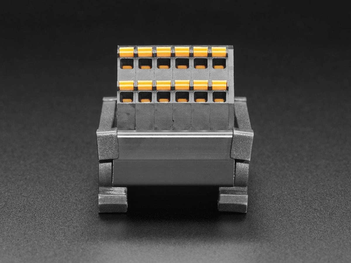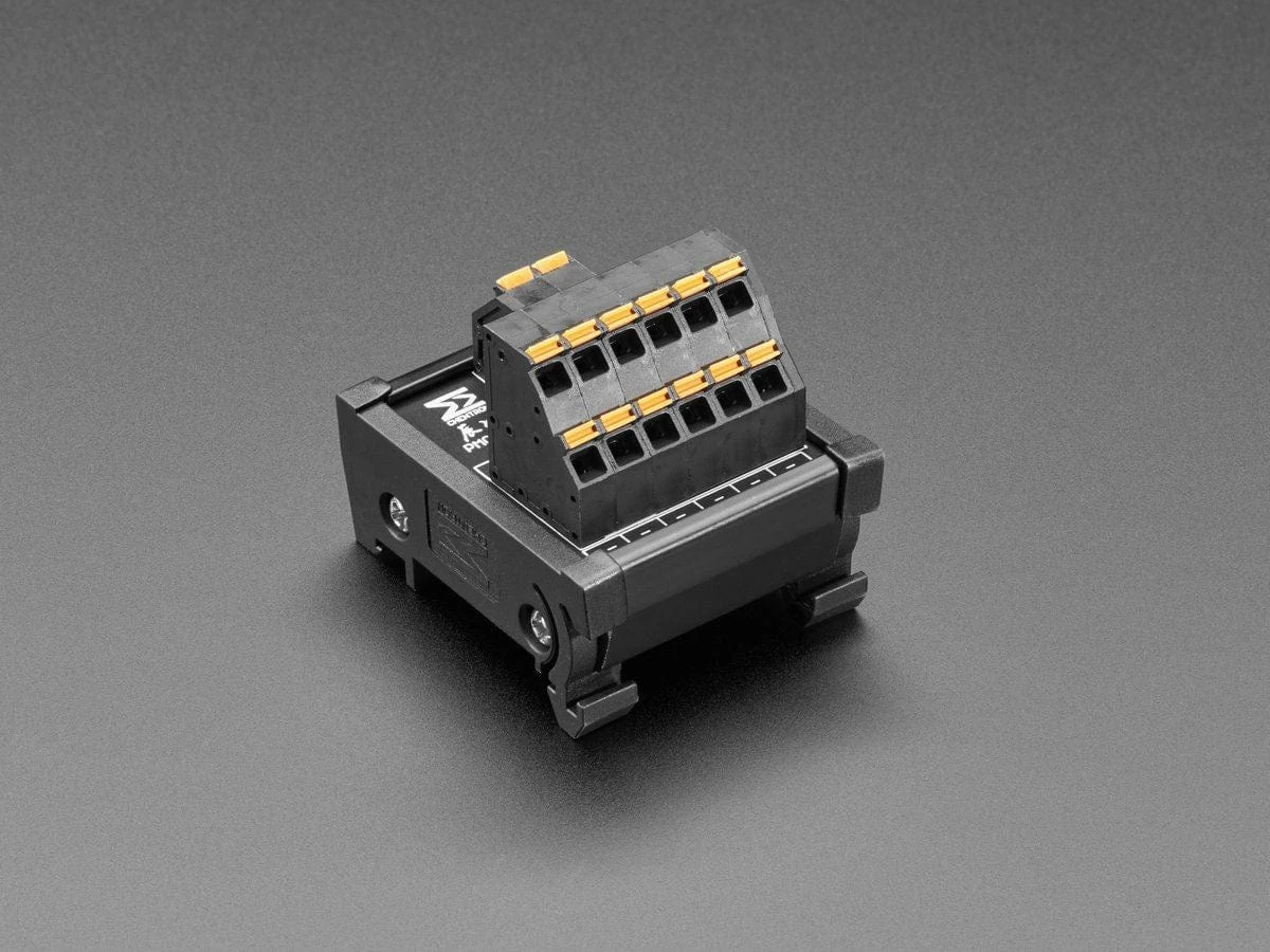 No soldering required! Just push in the terminal block tabs and slide in your stranded or solid-core wire. DIN rail not included, of course.
