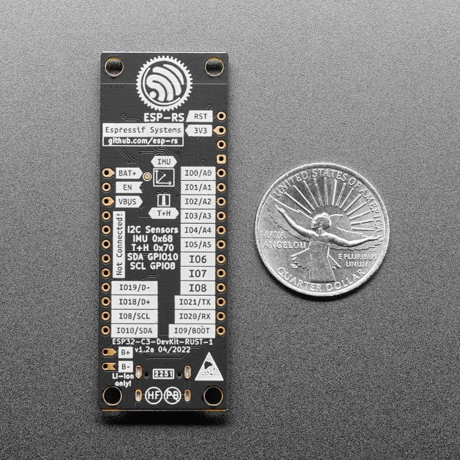 Please note: The C3 is similar to the ESP32 – but uses RISC V as a core, not Tensilica, and has Bluetooth LE (not classic!) However, there is minimal support for this dev board. For example, as of the time of this writing, there is no CircuitPython support – only Arduino and ESP IDF! Please purchase if you’re doing development with the C3, and recognize that it’s a different core than the classic ESP32s most folks have used.