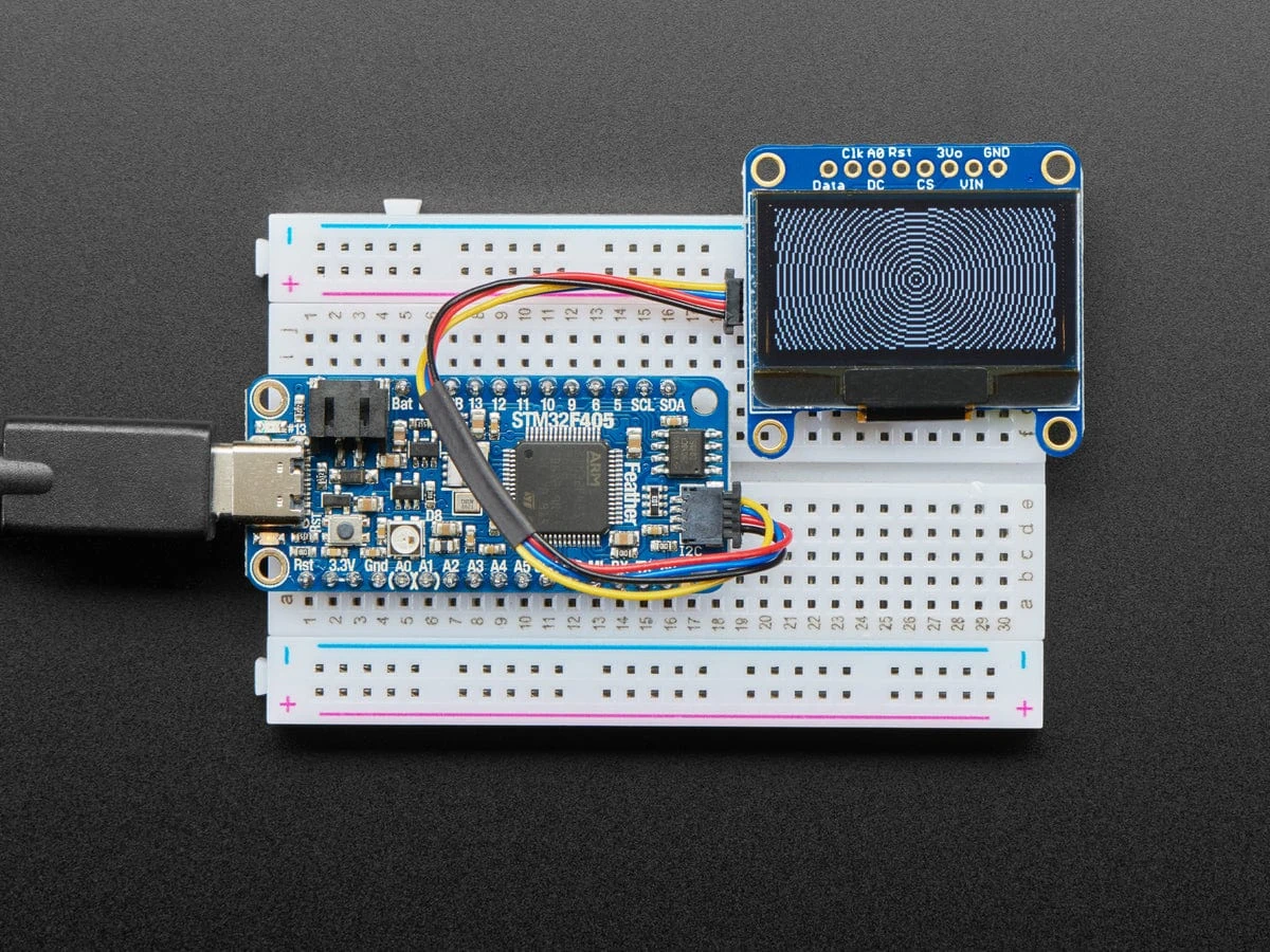 Please note that OLED displays are made of hundreds of… OLEDs! That means each pixel is a little organic LED, and if it’s kept on for over 1000 hours it’ll start to dim. If you want to keep the display uniformly bright, please turn off the display (set the pixels off) when it isn’t needed to keep them from dimming.