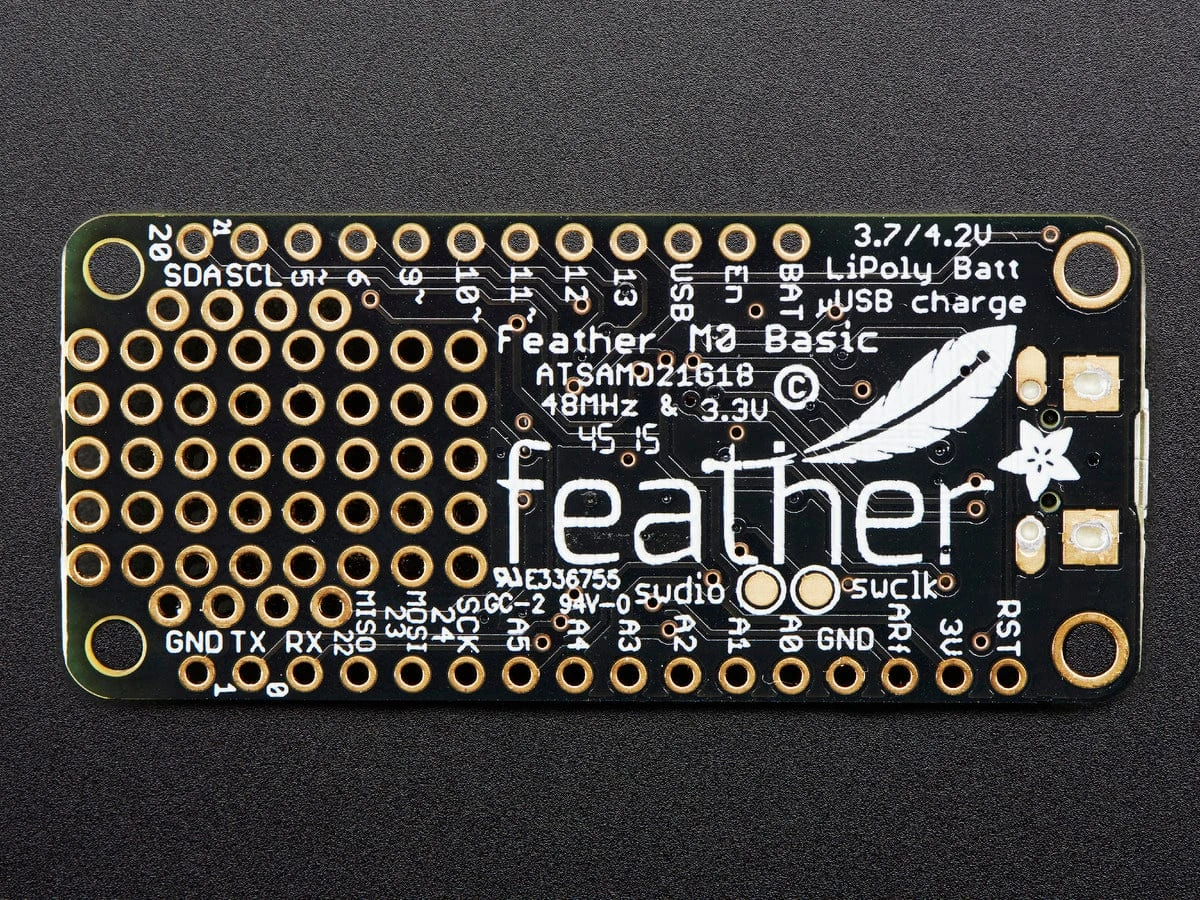 Feather is the new development board from Adafruit, and like its namesake it is thin, light, and lets you fly! We designed Feather to be a new standard for portable microcontroller cores.