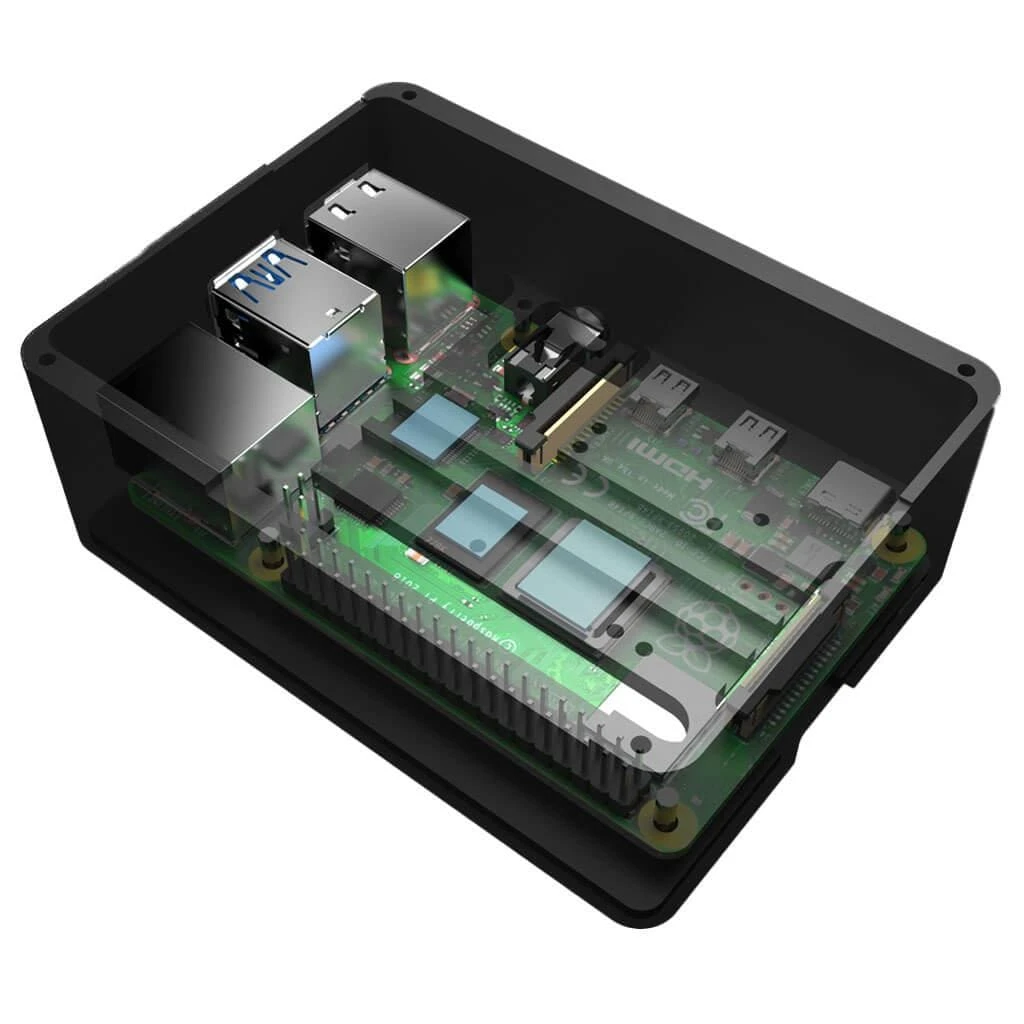 Anidees have used their signature glass-look perspex for the top lid, which is secured by stylish hex nuts. A clever ABS UL 94V0 flame-retardant plastic base ensures your Pi’s WiFi and Bluetooth signals can travel outside of the case, maintaining excellent wireless performance.