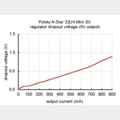The dropout voltage of a step-down regulator is defined as the minimum amount by which the input voltage much exceed the regulator’s target output voltage in order to assure the target output can be achieved. As can be seen in the graph, the dropout voltage of the Mini SV’s regulator increases approximately linearly with the output current. For light loads where the dropout voltage is small, the board can operate down to 5 V. However, for larger loads, the dropout voltage should be taken into consideration when selecting a power supply; operating above 6 V will ensure the full output current is available.