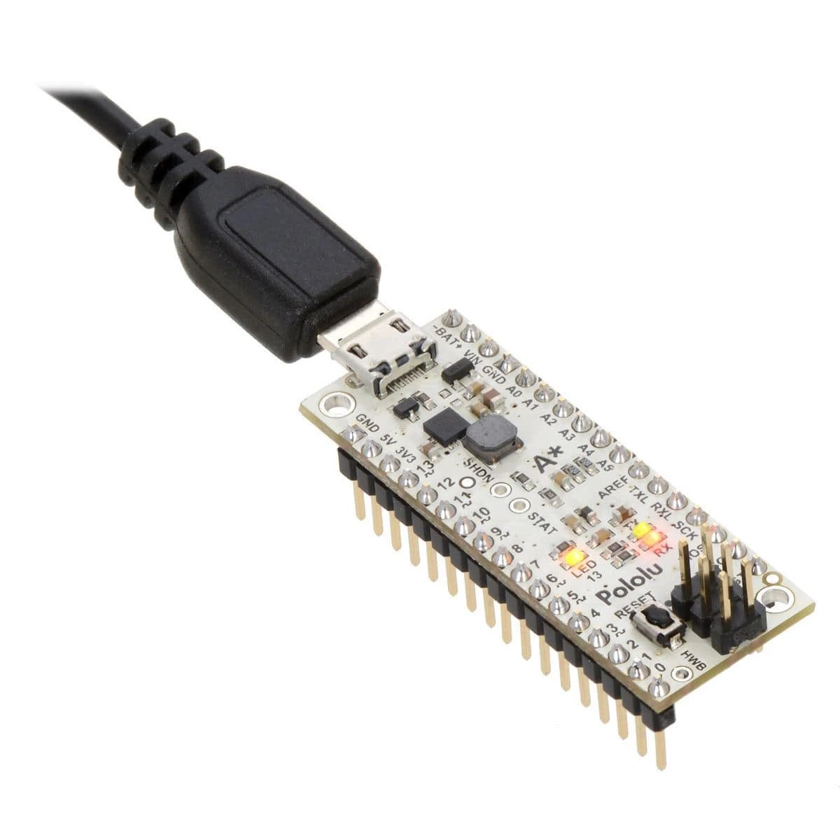 This compact 1.9″ × 0.7″ board breaks out all 26 of the microcontroller’s I/O pins (of which 7 can be used as PWM outputs and 12 as analog inputs), and loading programs is made easier by a Micro-USB interface and a preloaded Arduino-compatible bootloader.