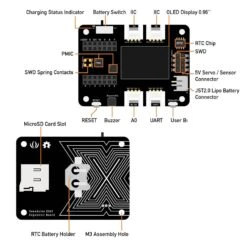 - Quick Prototyping: Easy debug and Reset with RESET button and SWD pin led out to the male header. 0.96” OLED enables visual data to display without a PC serial monitor