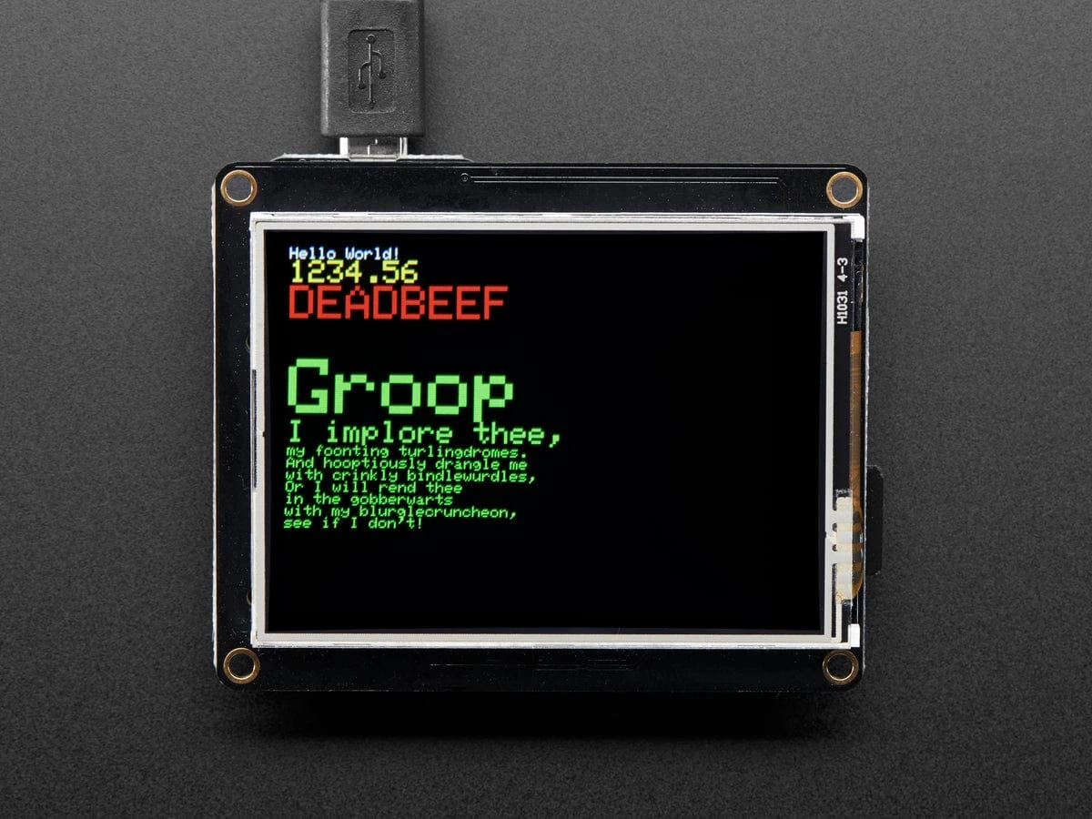 This FeatherWing uses a SPI display so it works fast on each and every one of our Feathers. We also include an SPI resistive touchscreen controller so you only need one additional pin to add a high quality touchscreen controller. One more pin is used for an optional SD card that can be used for storing images for display.