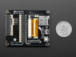 A Feather board without ambition is a Feather board without FeatherWings! Spice up your Feather project with a beautiful 2.4″ touchscreen display shield with built in microSD card socket. This TFT display is 2.4″ diagonal with a bright 4 white-LED backlight. You get 240×320 pixels with individual 16-bit color pixel control. It has way more resolution than a black and white 128×64 display. As a bonus, this display comes with a resistive touchscreen attached to it already, so you can detect finger presses anywhere on the screen.
